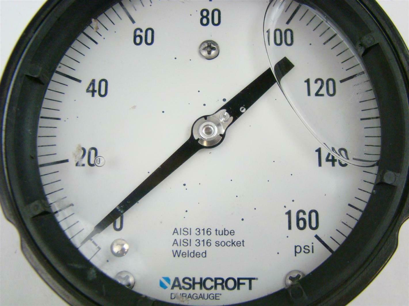 GRAINGER APPROVED Commercial Pressure Gauge 0 to 160 psi, 1 1/2 in Ashcroft Pressure Gauge 0-160 Psi ashcroft 1279 duragauge pressure gauge, 0 to 160 psi, 4.5 dial, ¼ npt male lower, phenolic. 316l ss process connection, max. 2 dial, 0 to 160 psi, 1/4 thread, npt, center back mount. Ashcroft Pressure Gauge 0-160 Psi.