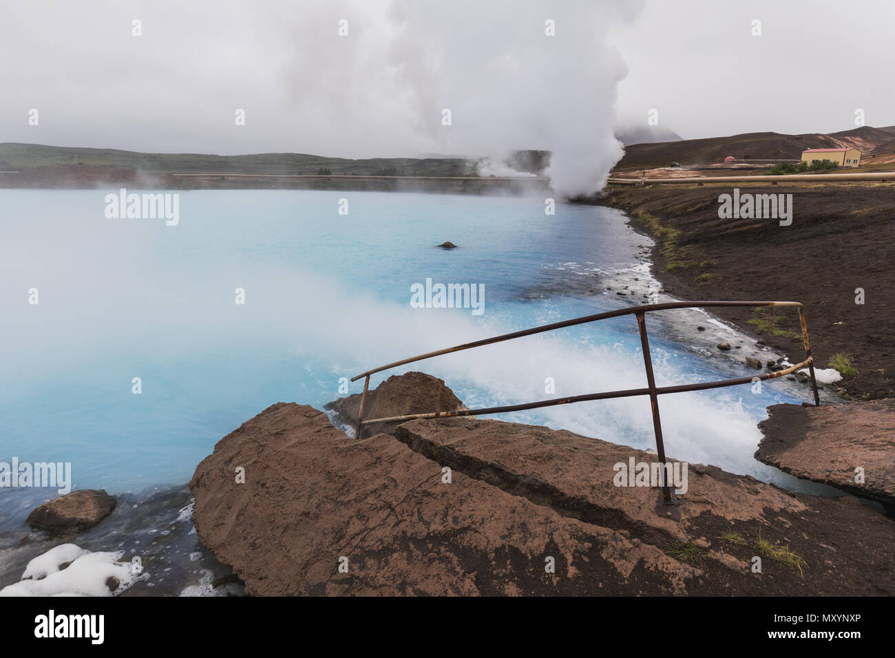 Water stream into blue nature bathe near lake myvatn in the north of
