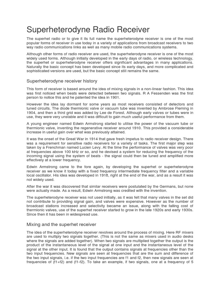 Superheterodyne Radio Receiver PDF Detector (Radio) Frequency