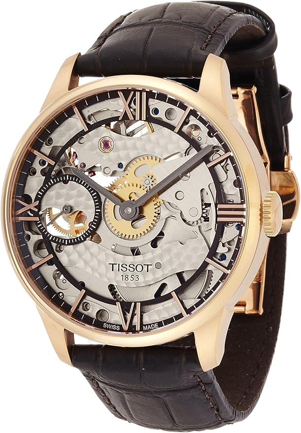 Tissot Chemin Des Tourelles Squelette Skeleton Dial Brown Leather Mens