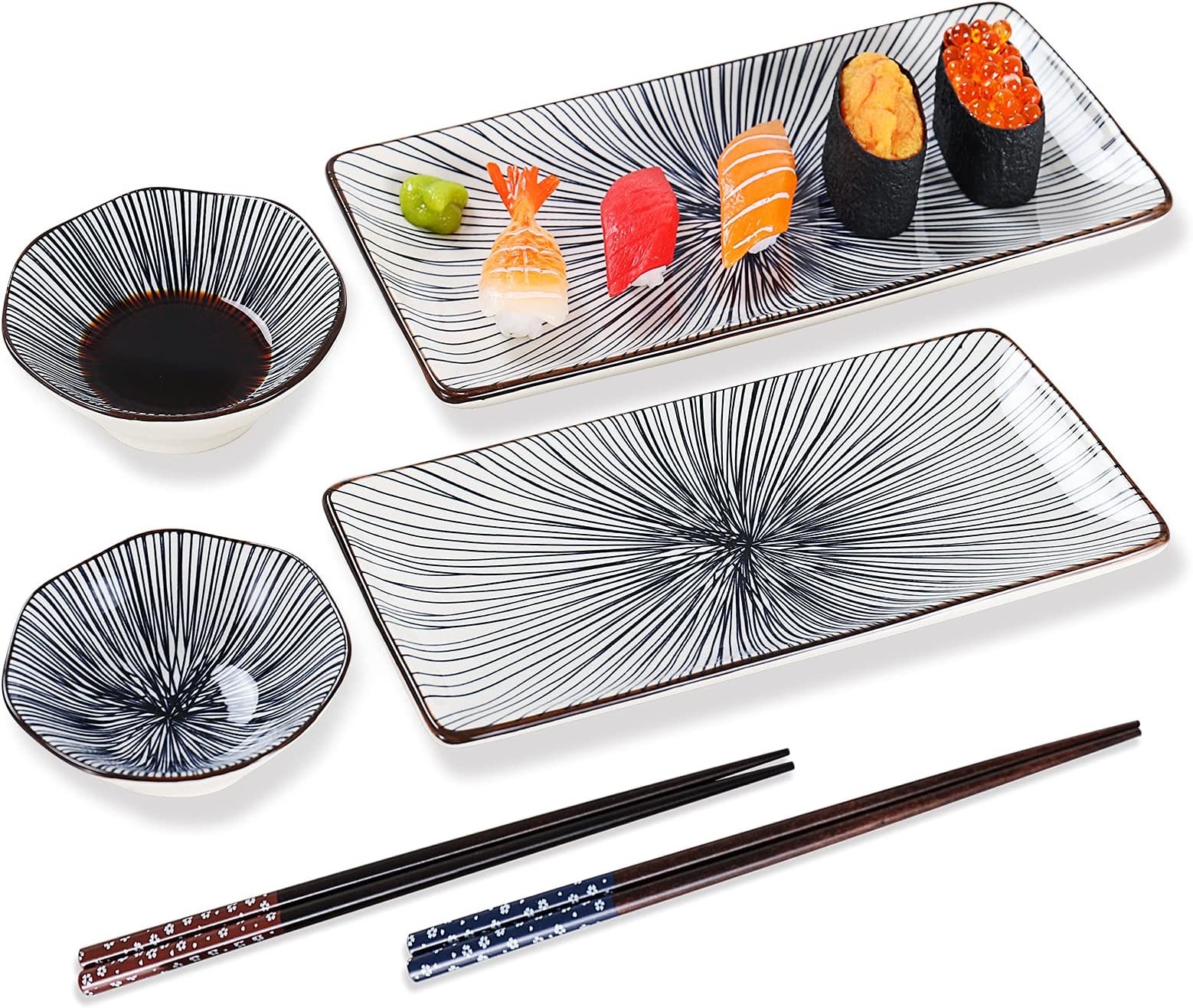 Sushi Plates Set You can even use these. Wood, ceramic, and more for every sushi lover! In addition to essential items. with the presentable blue lines pattern, this plate set makes your food more delicious, showing that your. authentic japanese sushi sets. set a table worthy of the land of the rising sun. genuine sushi plate collection for enjoying. Sushi Plates Set.