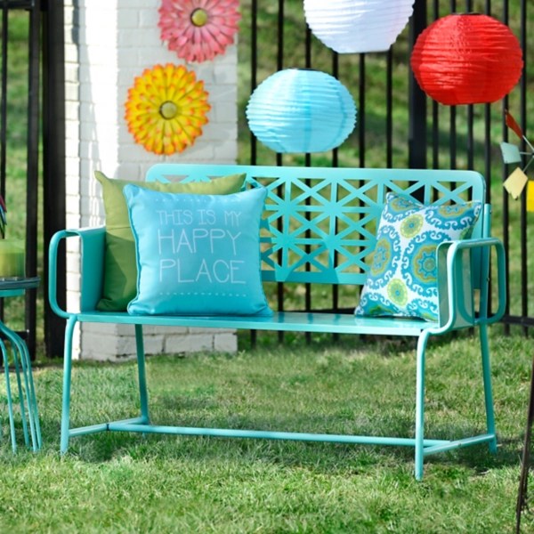 Turquoise Retro Metal Bench Kirklands