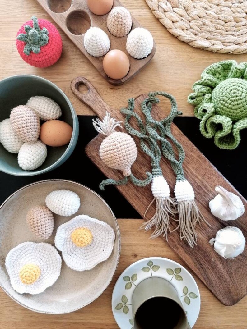 Green onions 1 Pcs Play food Crochet vegetables Handmade Crochet Onion Play Food This handmade crochet play food is a perfect addition to your toy kitchen. Crochet onion would be a nice decor for the kitchen or dining room. It looks absolutely incredible when tied in a long bun and hung on. Crochet amigurumi foods are best for kids playing kitchen as they look realistic, durable, and always fresh. This free crochet pattern. Crochet Onion Play Food.