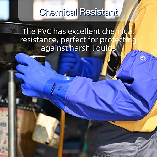 LANON 2 Pairs PVC Coated Chemical Resistant Gloves, Reusable Heavy Duty Safety Work Gloves, Acid Lanon Pvc Coated Chemical Resistant Gloves Lanon pvc coated chemical resistant gloves, reusable heavy duty safety work gloves, acid, alkali & oil protection, 26 elbow length, xx. The gloves can reach the en 4 level of abrasion resistance, providing excellent friction resistance. Lanon 26 inch reusable oil resistant work gloves keep your arms and hands protected when you work with liquids and chemicals. Premium pvc coating. Lanon Pvc Coated Chemical Resistant Gloves.