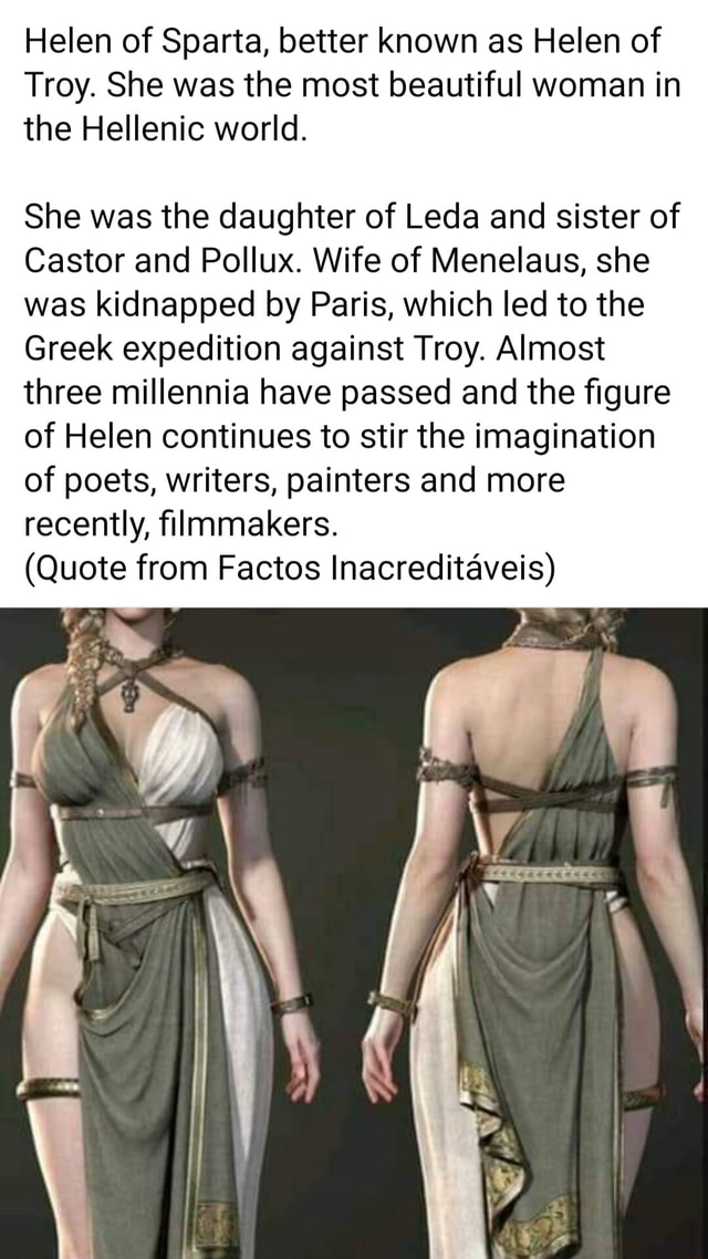 Helen of Sparta, better known as Helen of Troy. She was the most