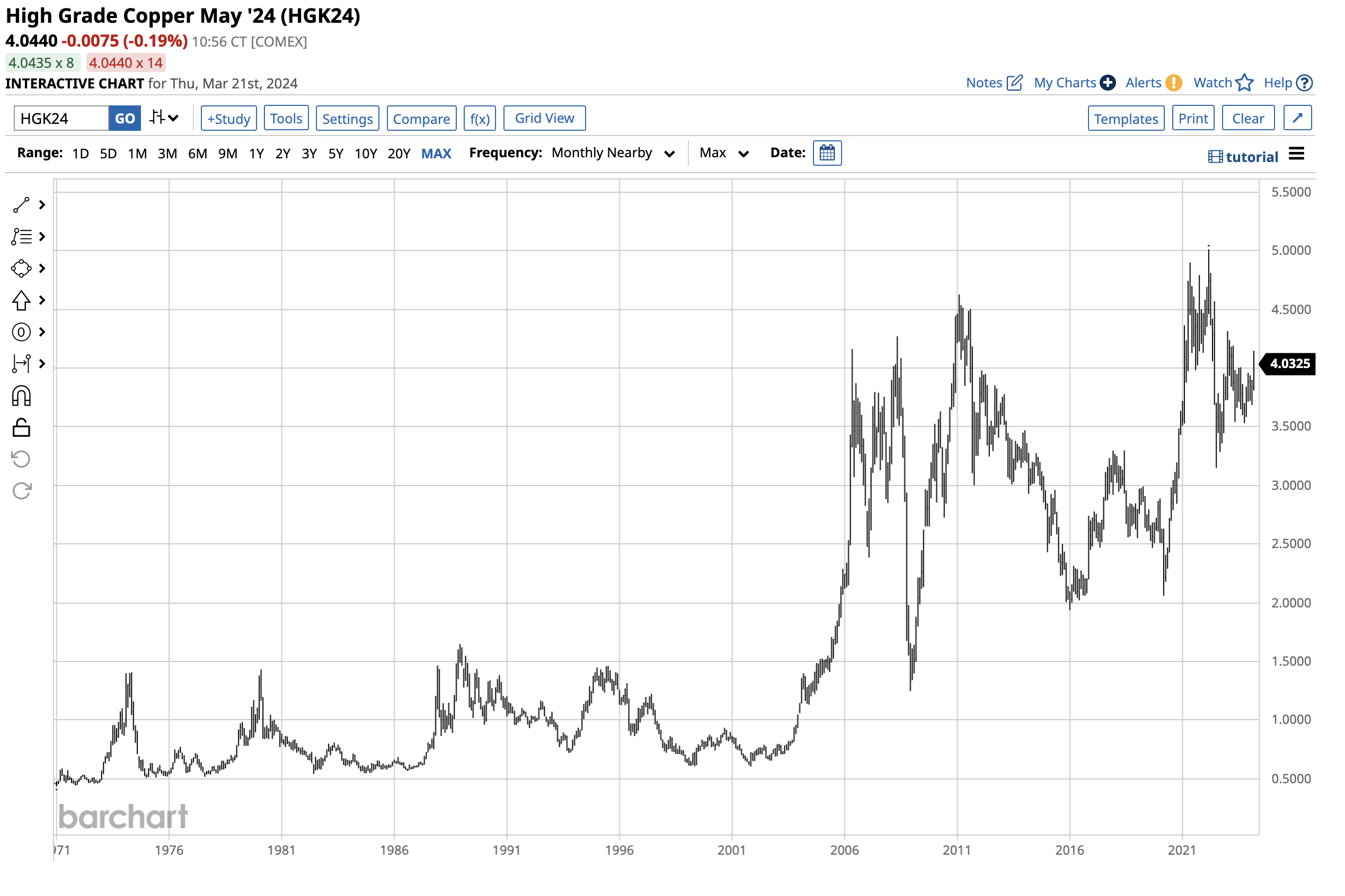 Copper Futures Chart . You have the option to change the. Copper futures offer price mitigation to a range of market participants. Get instant access to a free live streaming chart for copper futures. 15 rows access our free advanced live streaming price chart for copper futures commodity price to gain the upper edge for your investment. An important risk management tool and the. Customize the chart type, style, indicators and. Get the latest copper price and futures prices, as well as market news and analysis at nasdaq. Copper high grade front month futures price information, historical data, charts, stats and more. Copper futures steadied around $4.33 per pound on thursday on hopes that top consumer china will announce more fiscal stimulus measures. 15 rows view live copper futures prices and charts for different exchanges and currencies.