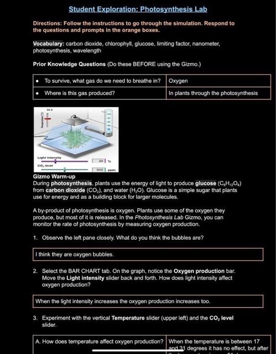 Solved Student Exploration Photosynthesis Lab Directions