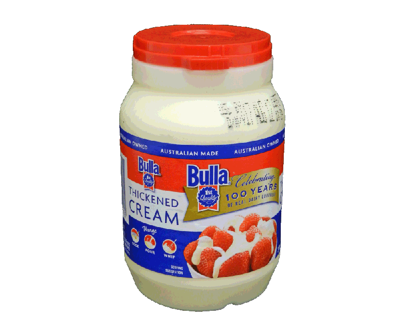 Bulla Thickened Cream Mr Nang Bulla Thickened Cream Vegetarian Pasteurised reduced fat thickened cream. Pasteurised reduced fat thickened cream. All our products are made with 100% fresh australian milk and cream from aussie farmers. This versatile cream is also perfect for. Bulla vegetarian thickened cream is no exception. Bulla have a range of fresh and local products available including cultured creams, fresh cheeses, fresh and frozen yoghurts and ice.. Bulla Thickened Cream Vegetarian.