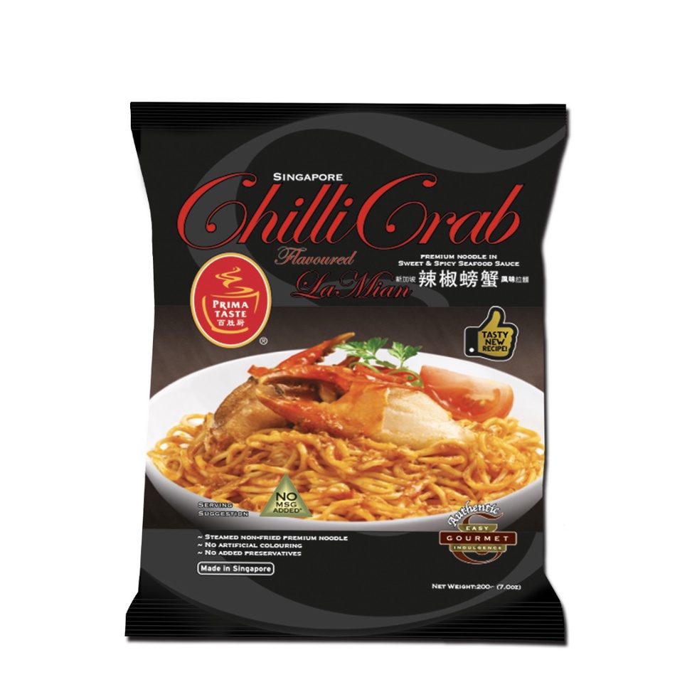 Singapore Prima Taste Chilli Crab Flavoured La Mian 200g 新加坡辣椒螃蟹风味拉面 Singapore Chili Crab Flavored La Mian Noodle Prima taste lamian comes in 6 flavours and is renowned worldwide for its premium noodles. It is sweet, tangy, spicy and savoury all at the same time. Add however much chilli paste you like, but fair warning: The flavoring was a nice balance running between a prawn inspired crab hit, a spiciness, and a meaty kind of buzz. Chilli crab. Singapore Chili Crab Flavored La Mian Noodle.