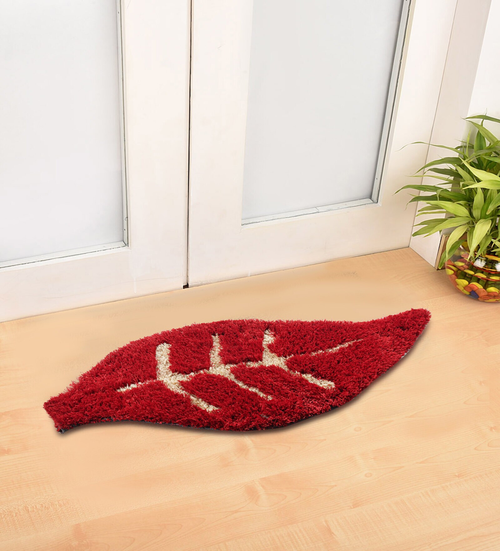 Buy Red Floral Polyester 37 x 15 Inches Anti Skid Door Mat by Fabinaliv