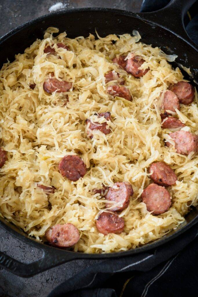 KielbasaandSauerkrautSkilletRecipe2 • Low Carb Nomad Sauerkraut And Kielbasa Skillet How to make a delicious smoked sausage and sauerkraut skillet. When you’re craving a quick and easy skillet dinner, this recipe for kielbasa and sauerkraut is the best. This simple recipe is a skillet dinner made on the stove top using common ingredients found in your grocery store. A kielbasa and sauerkraut dinner is quick and simple comfort food. It. Sauerkraut And Kielbasa Skillet.