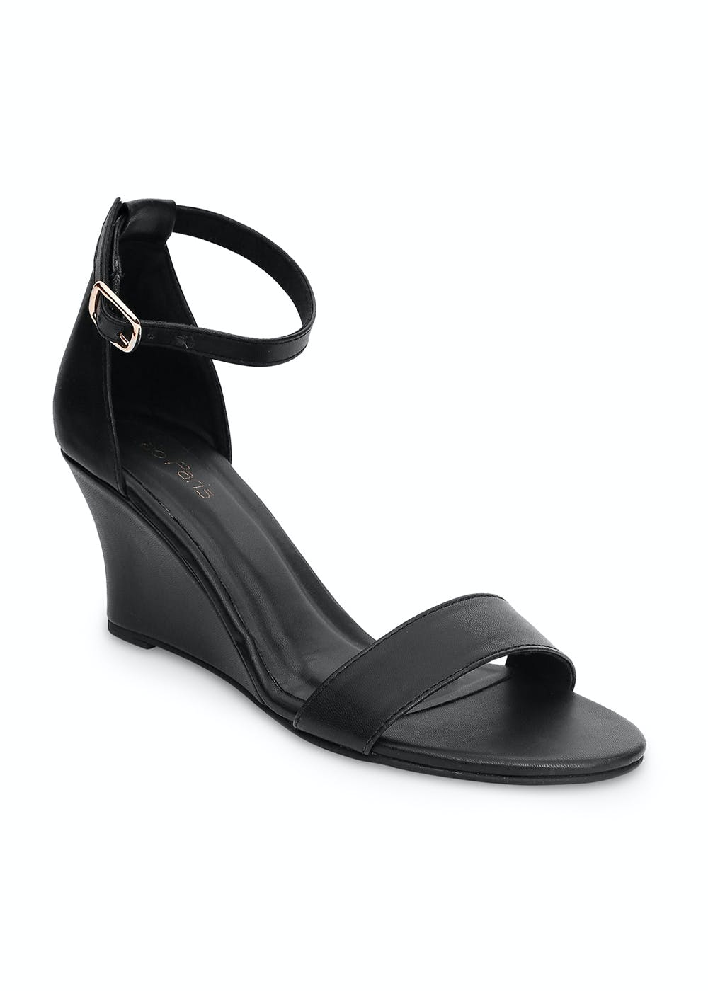 Get Matte Effect Black Ankle Tie Wedges at ₹ 1495 LBB Shop