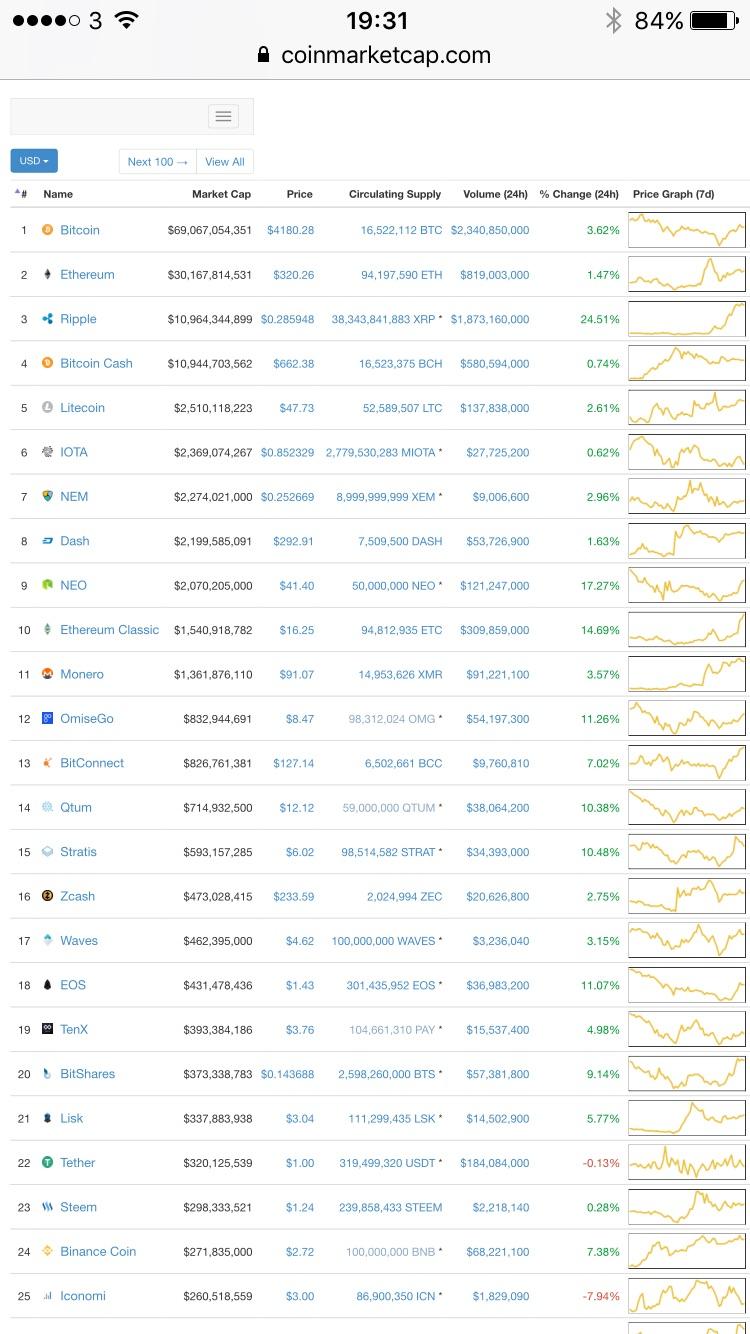 In the top 25, only 2 crypto's showing market dips in past 24 hours