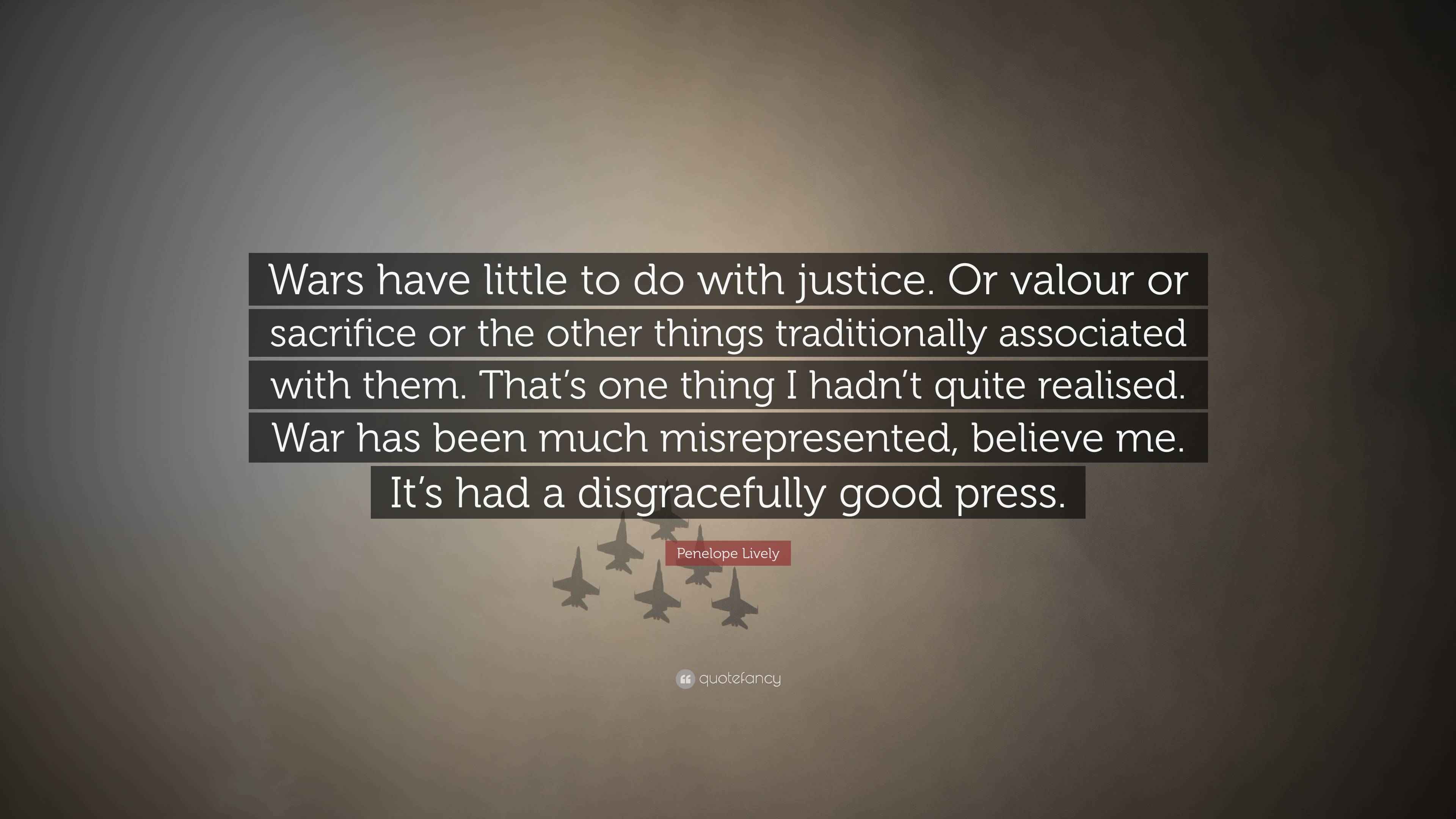 Penelope Lively Quote “Wars have little to do with justice. Or valour