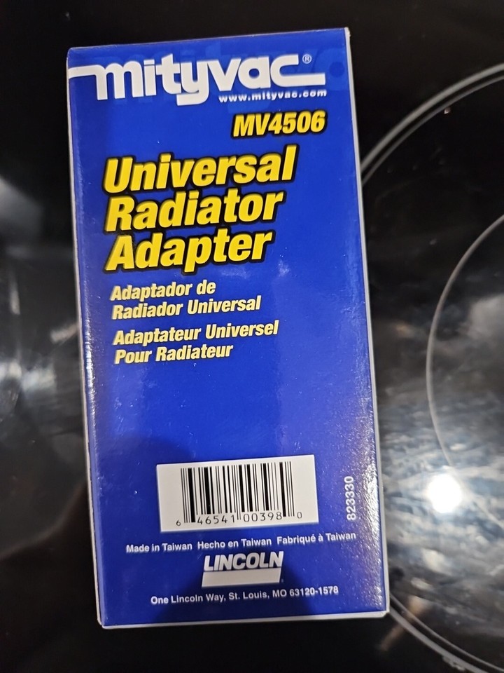 Mityvac MV4508 Universal Cooling System Adapter Universal Cooling System Adapter The mv4508 universal cooling system adapter is simple and quick to install in virtually any radiator or coolant reservoir neck. Simply attach the radiator adapter from your standard kit to the inlet side of our universal adapter, to create a pressure tester. Universal cooling system adapter is simple and quick to install in virtually any radiator or coolant reservoir neck.. Universal Cooling System Adapter.