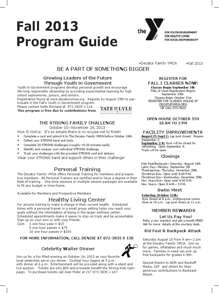 Decatur YMCA Fall Program Guide PDF Human Swimming Individual Sports