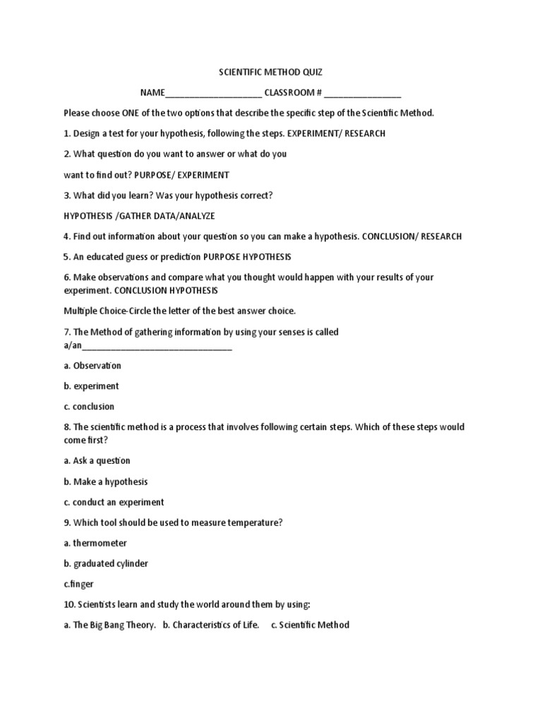 Scientific Method Quiz 11 PDF Hypothesis Experiment Scientific Method Quiz 1 test your understanding of the scientific method with this quiz. A hypothesis is a question. Data used to generate a hypothesis may come from observations,. A) making a hypothesis b) interpreting data. study with quizlet and memorize flashcards containing terms like hypothesis, variables, independent. scientific method quiz #1 quiz for 6th grade students. Find other quizzes for. Scientific Method Quiz 1.