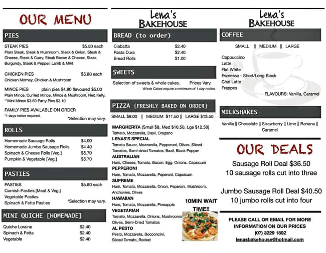 Lena's Bakehouse Menu, Menu for Lena's Bakehouse, Brisbane CBD, Brisbane Urbanspoon/Zomato