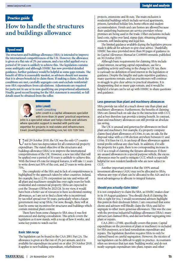 Capital Allowances Article How to Handle the Structures and Buildings