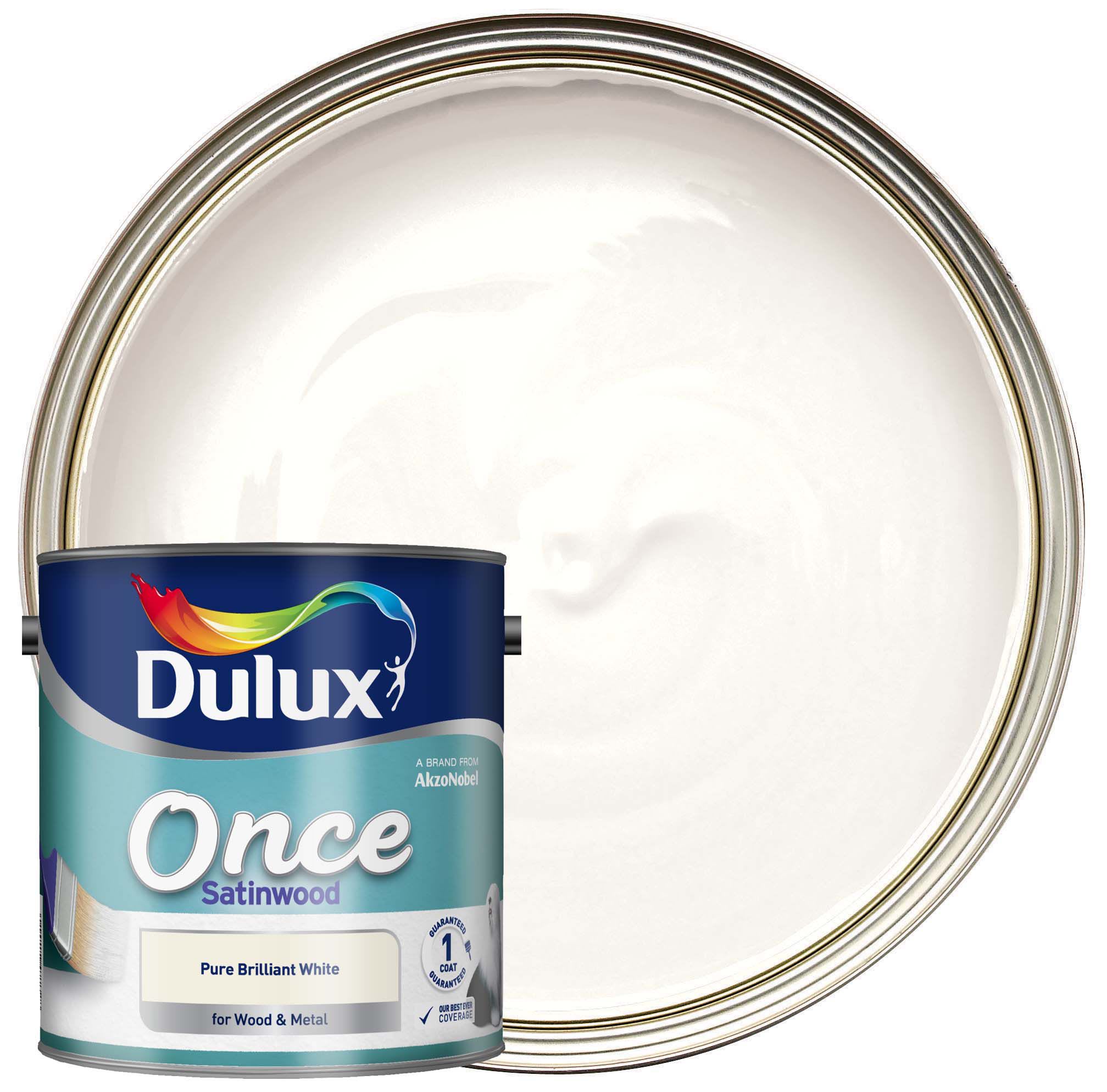 Dulux Once Satinwood Paint Pure Brilliant White 2.5L Wickes.co.uk