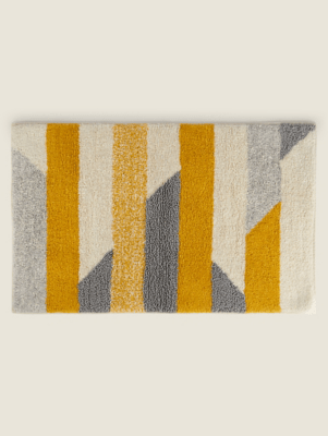 Grey & Yellow Stripe Bath Mat Home at ASDA