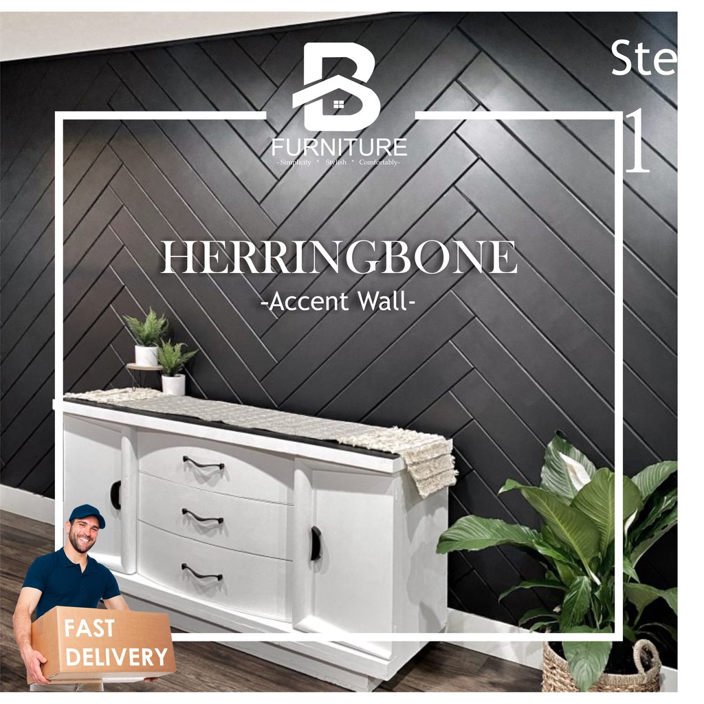 【Ready Stock】DIY Herringbone Accent Wall/Shiplap Wind Coating MDF