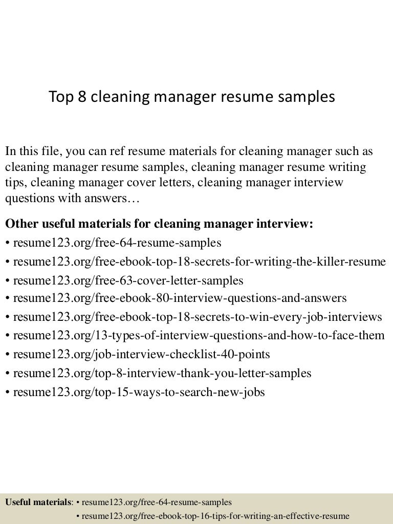 Top 8 cleaning manager resume samples