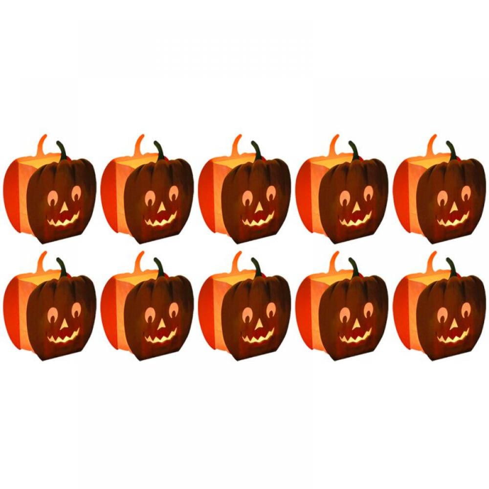 10Pack Luminary Bags Halloween Pumpkin Paper Luminary Bags, Flame