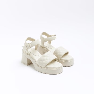 Cream chunky heeled sandals River Island