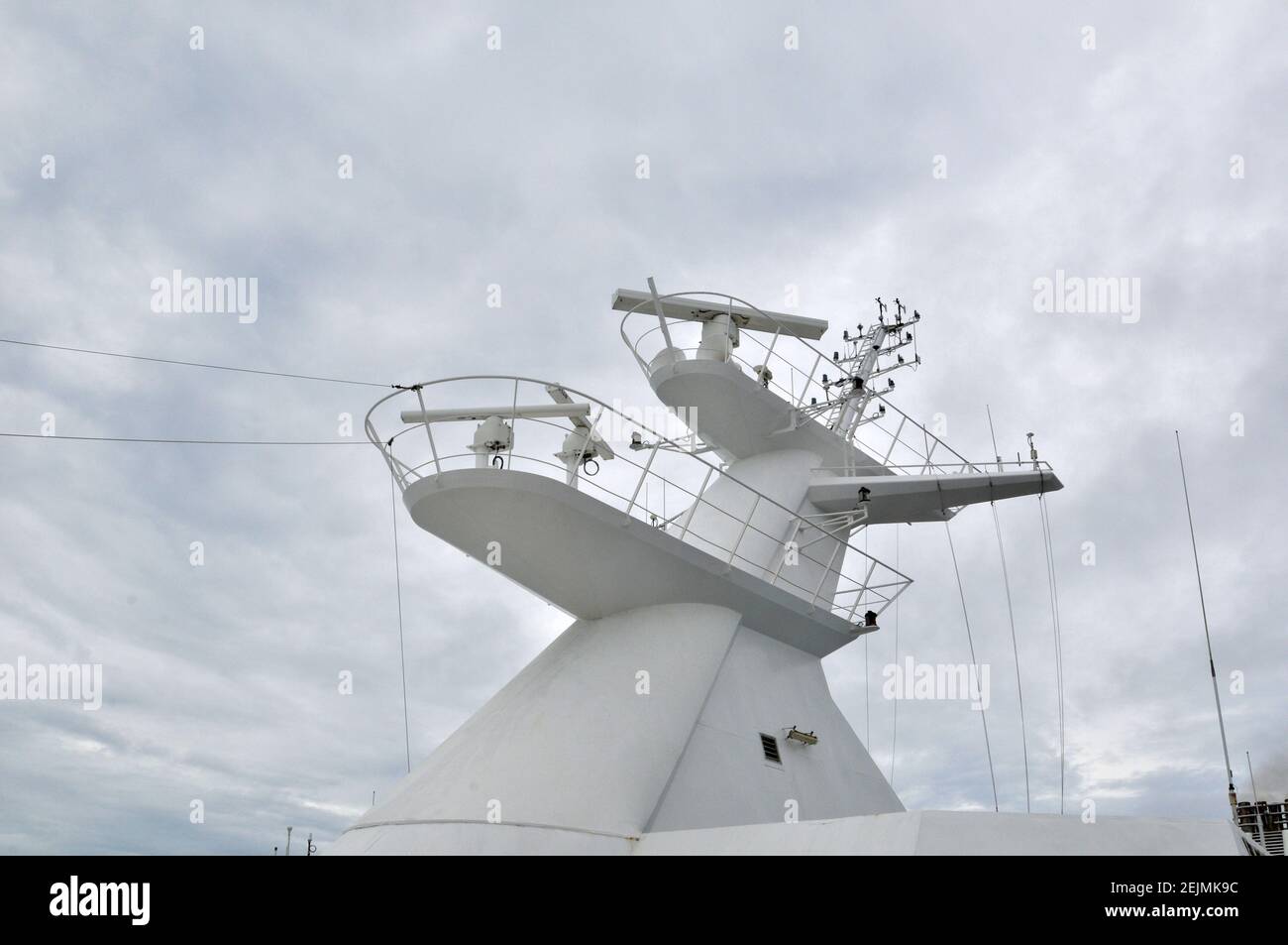 Radar antennas on a cruise ship during a cloudy day Stock Photo Alamy