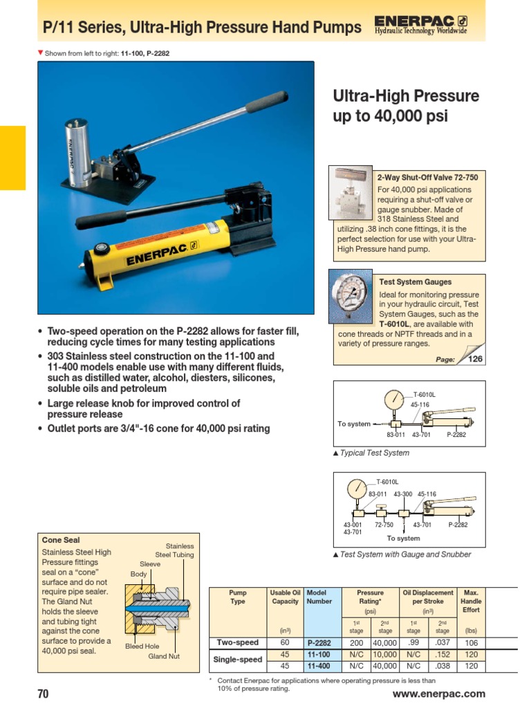 ENERPAC, 2 Stages, Single Acting, Hydraulic Hand Pump 4PU57P462 How To Use Enerpac Hand Pump Enerpac parts are designed to fit properly and withstand high loads. If pump is used in dirty environments, change the oil more often. drain all oil and refill with clean enerpac oil every oil from flowing out of the pump. use only enerpac hydraulic oil with these pumps to promote long pump life and to protect your warranty.. How To Use Enerpac Hand Pump.