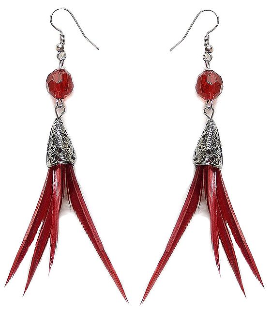 Red Feather Earrings