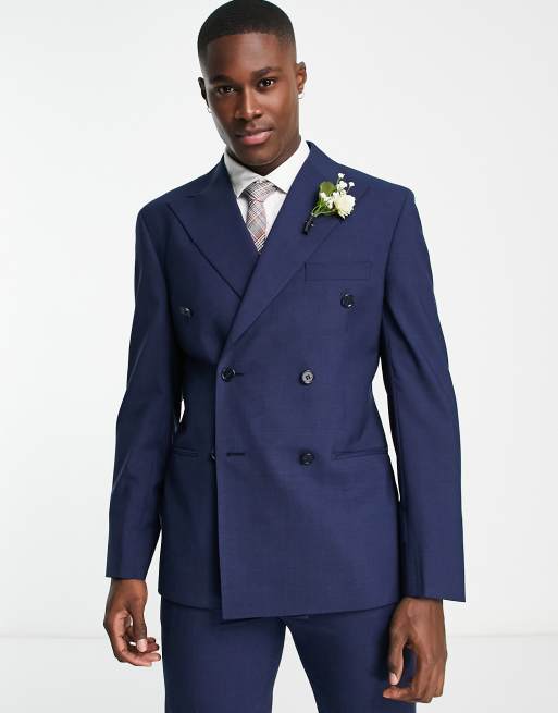 Noak woolrich slim doublebreasted suit jacket in navy ASOS