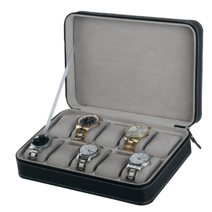 Watchbox กล่องนาฬิกาไม้บุหนัง แบบฝาทึบมีซิปสำหรับพกพาได้สะดวก สำหรับ