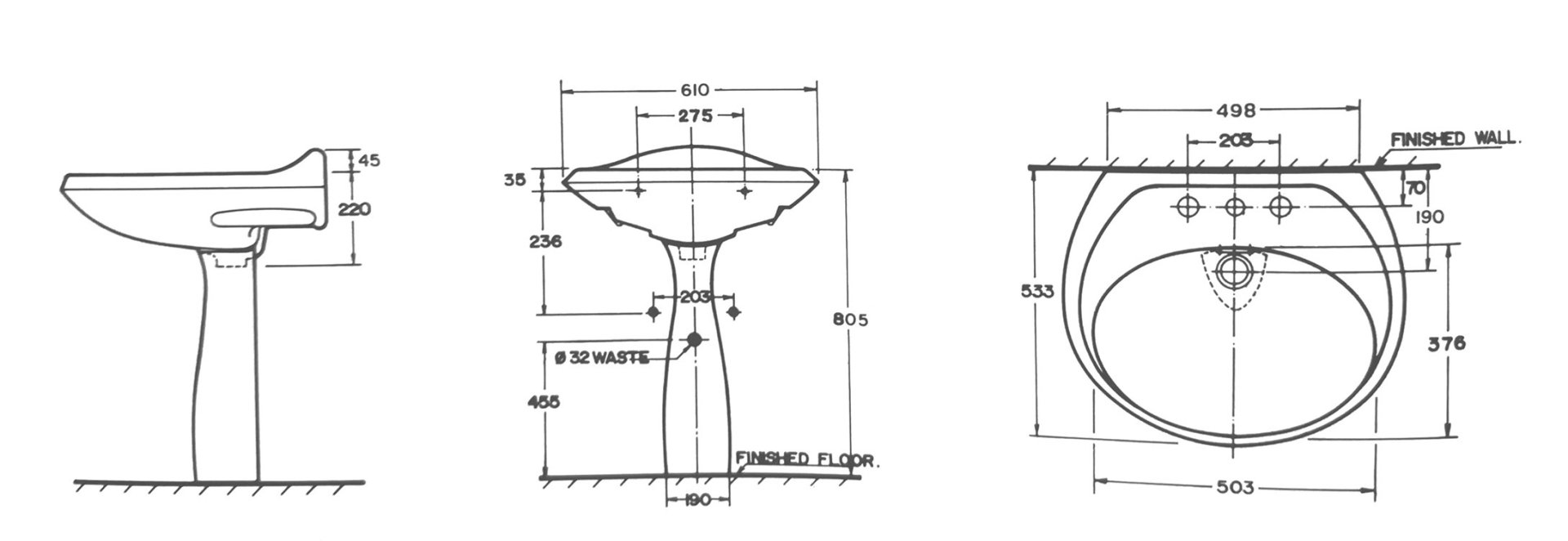 TF0035 อ่างล้างหน้า แบบขาตั้ง (Pedestal Lavatory) รุ่น ELLISSE PETITE