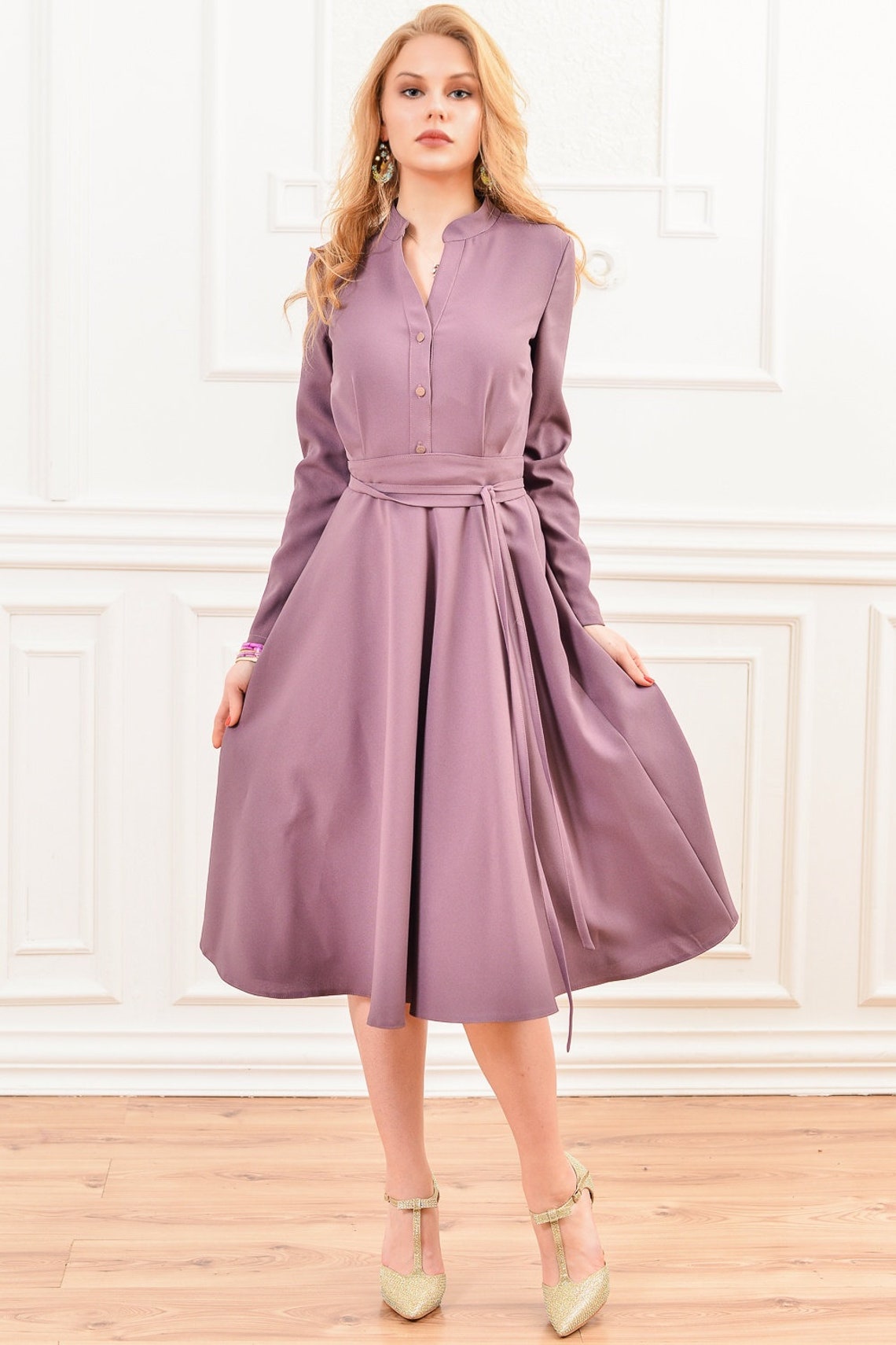 Light Purple Dress Women Midi Dress Shirt Dress Collar Etsy