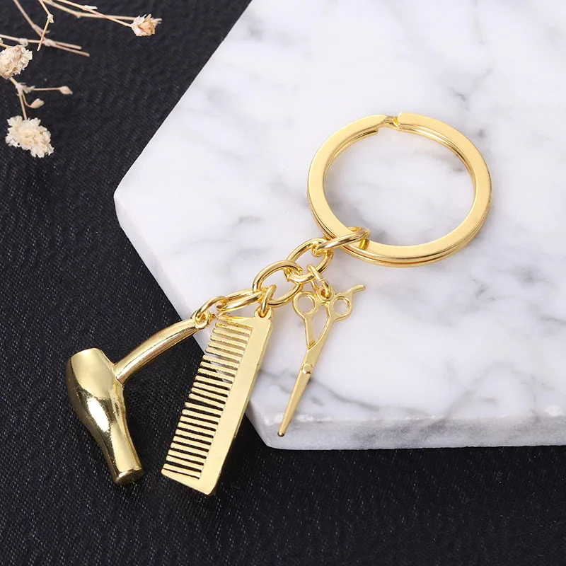 Key Chains Comb Keychain Hair Dryer Scissor Alloy Cosmetologist Fashion