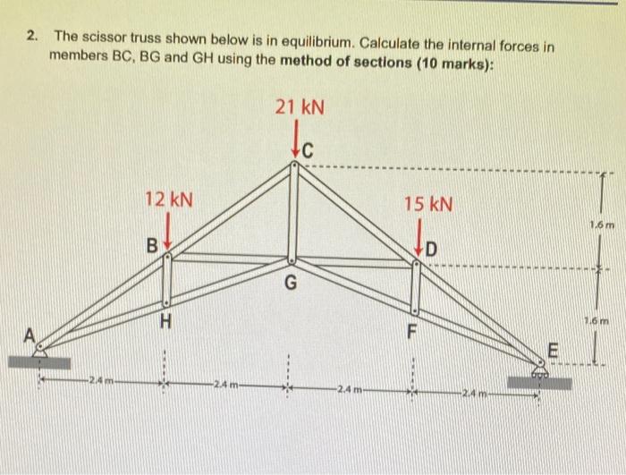 Solved 2. The scissor truss shown below is in equilibrium.