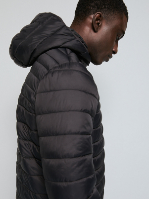 Black Hooded Padded Lightweight Jacket Men at ASDA