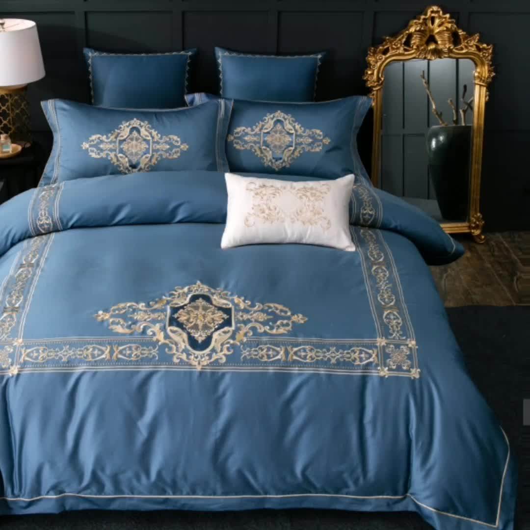 Hotel Luxury Golden Court Embroidery Duvet Cover Bedsheets 100 Cotton
