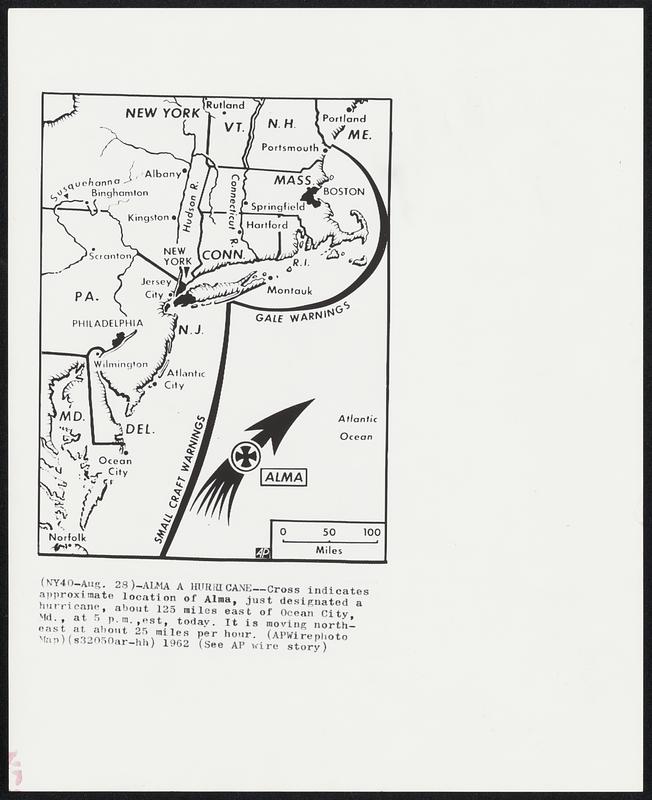 Alma a HurricaneCross indicates approximate location of Alma, just