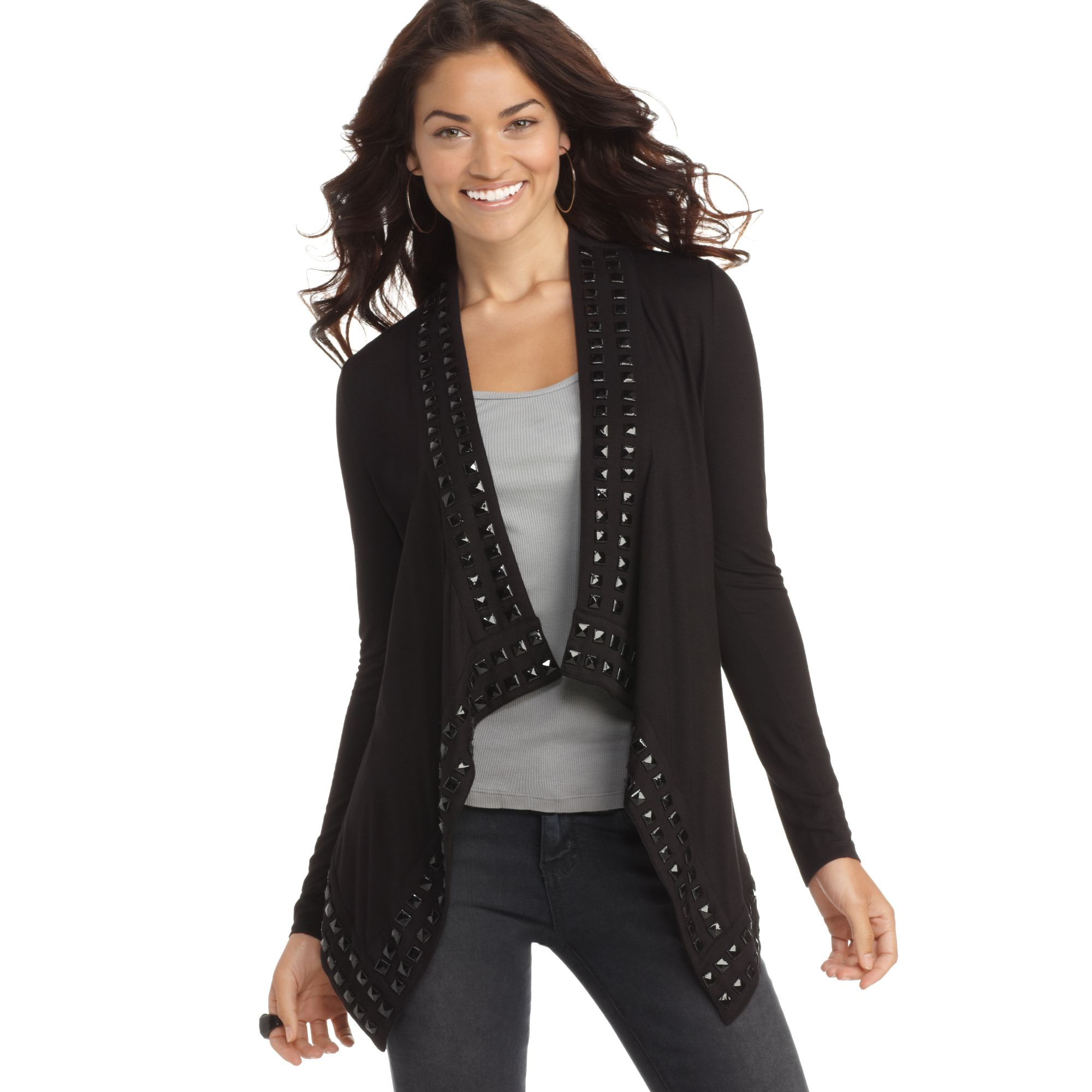 Guess Sweater Open Front Long Sleeve Studded Cardigan in Black Lyst