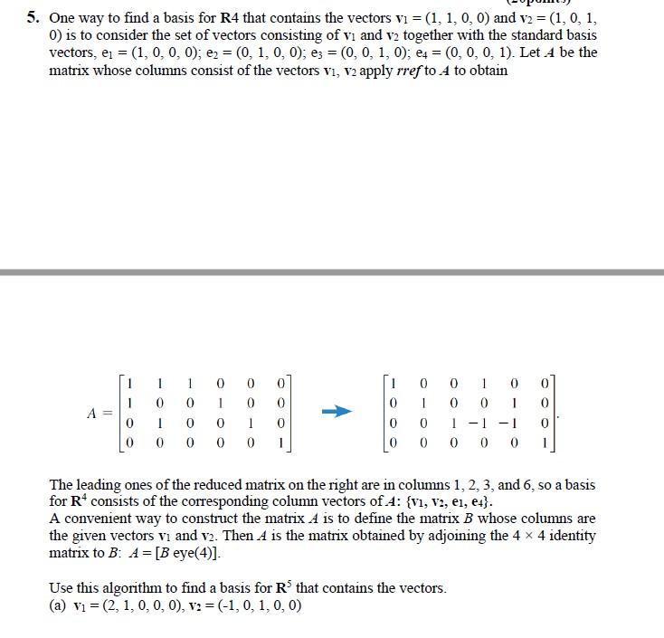 Solved 5. One way to find a basis for R4 that contains the