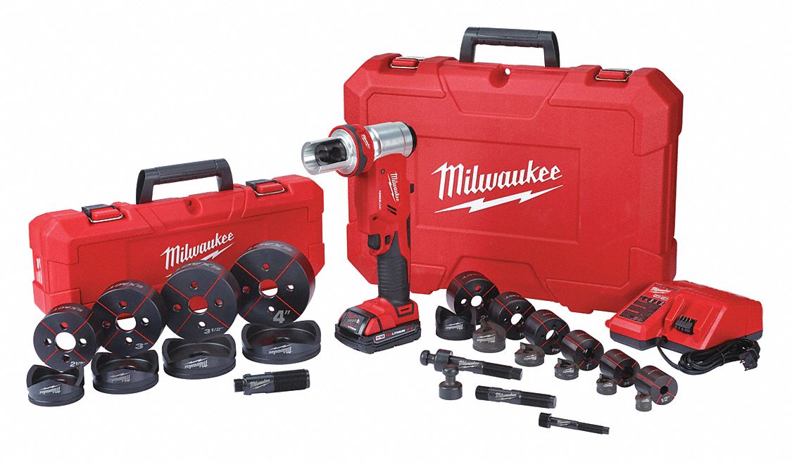 MILWAUKEE, 18V DC, 4 in Punching Capacity (Steel), Knockout Tool Kit