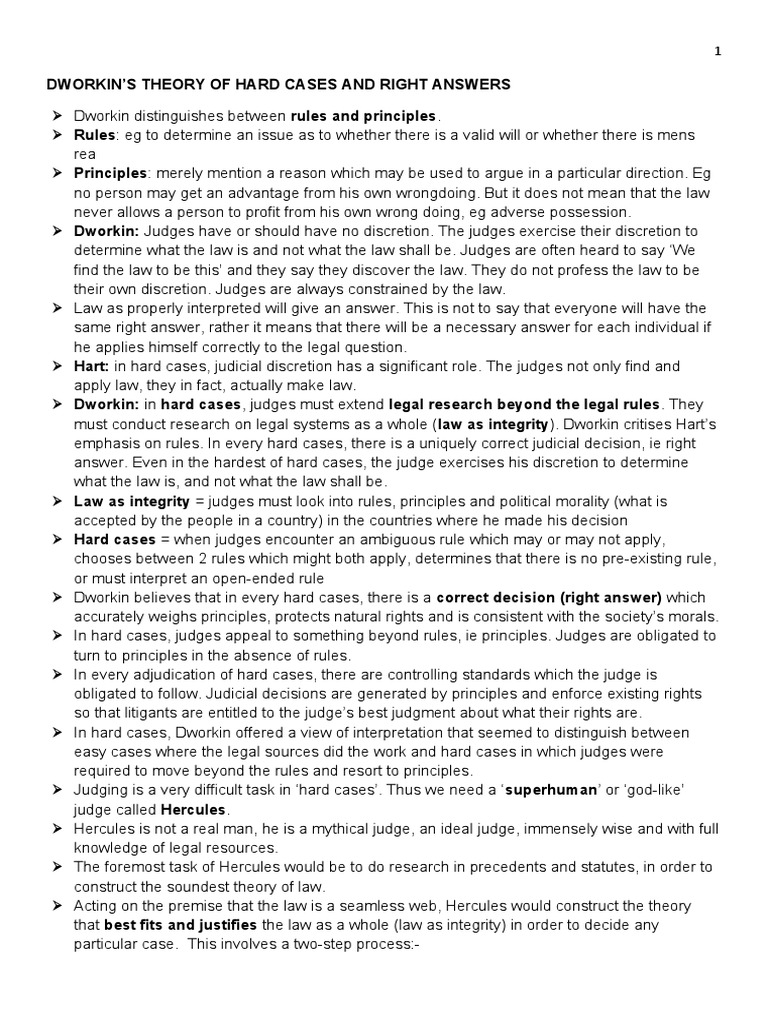 Jurisprudence Hart vs Dworkin Compare and contrast Hart and Dworkin’s Hard Cases Dworkin Dworkin’s two types of “hard case”: A short guide for the perplexed. Dworkin argues that, when faced with a difficult case to which no statute or previous decision applies, a judge does not. Ronald dworkin * philosophers and legal scholars have long debated the means by which decisions of an independent judiciary can. A) a case without a rule and,. Hard Cases Dworkin.