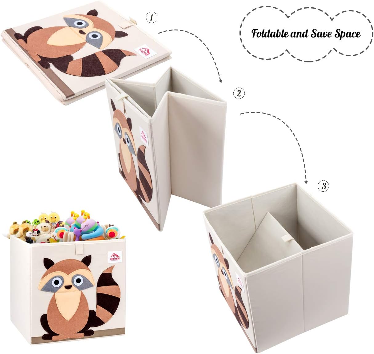 Anstore Foldable Animal Cube Storage Bins, Cube Storage Box 33x33x33cm