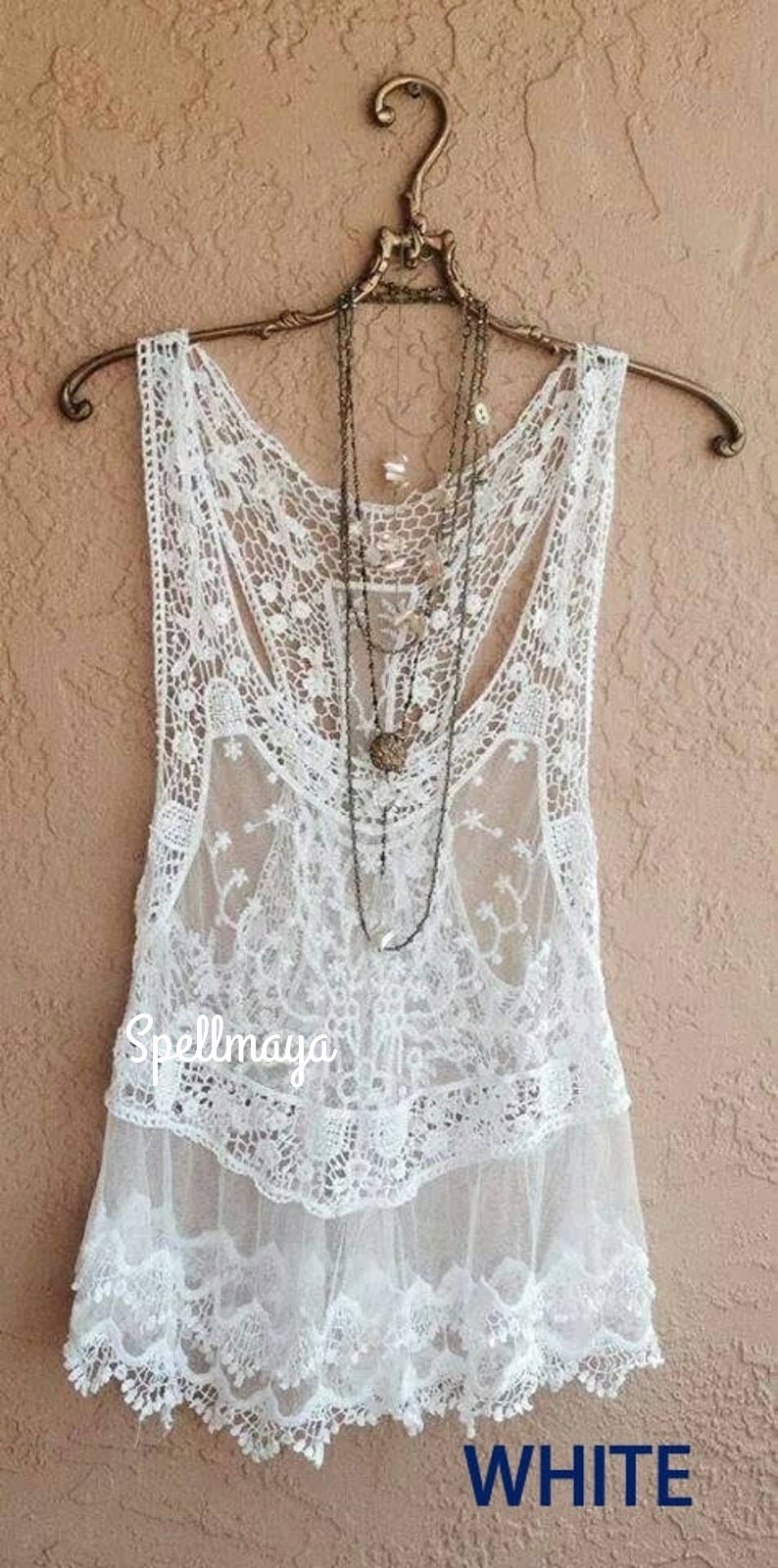 Sheer Lace Tank Top /boho Lace Top/ Romantic Lace Top/swim Etsy Lace Tank Top Boho This womens tank tops item by spellmaya has. Brand new white lace tank top, boho style, close up of. Boho floral tank tops for women, shirred straps pleated summer casual sleeveless shirts tops beach blouses Check out our boho lace tank selection for the very best in unique or custom, handmade pieces from our tanks shops. Everything you need at. Lace Tank Top Boho.
