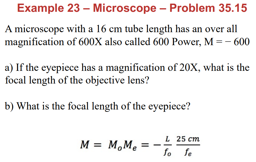 Solved Example 23 Microscope Problem 35.15 A microscope