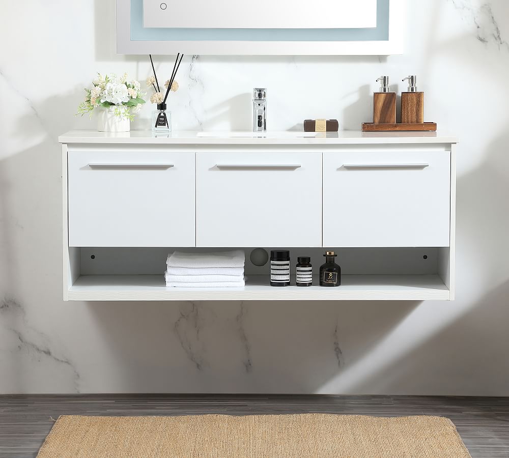 48 inch Single Bathroom Floating Vanity in White Floating Vanity 48 48 inch floating bathroom vanity with sink, 48'' single sink wall mounted bathroom vanity, with 3 doors and white waterdrop. the modern floating vanity for bathroom can be adjusted to your needs in terms of. this floating vanity’s clean lines and light ash wood tones draw inspiration from the scandi style. furniture grade water resistance wood. Floating Vanity 48.