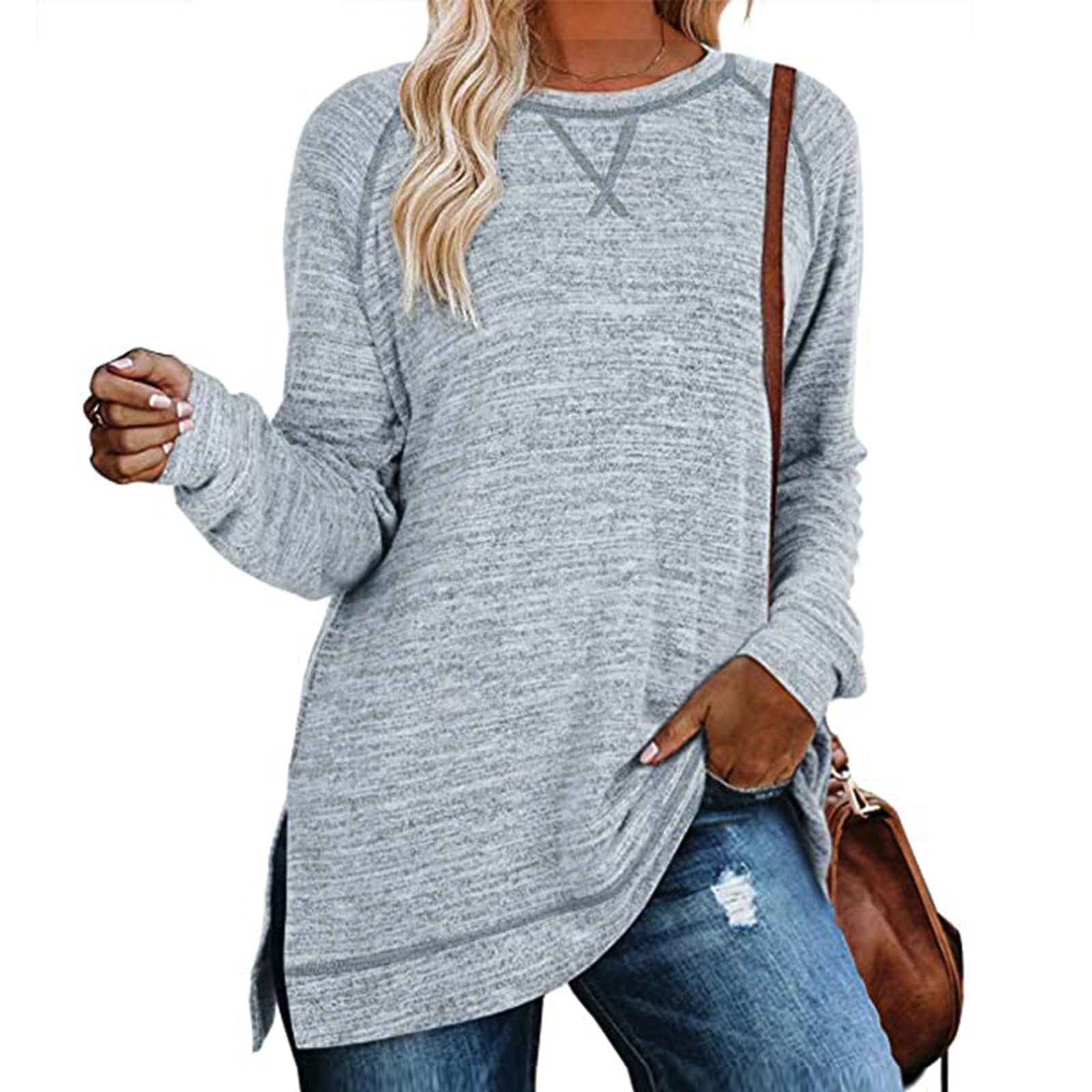 Womens Sweaters Long Sleeve Shirts Lightweight Sweatshirts Side Split